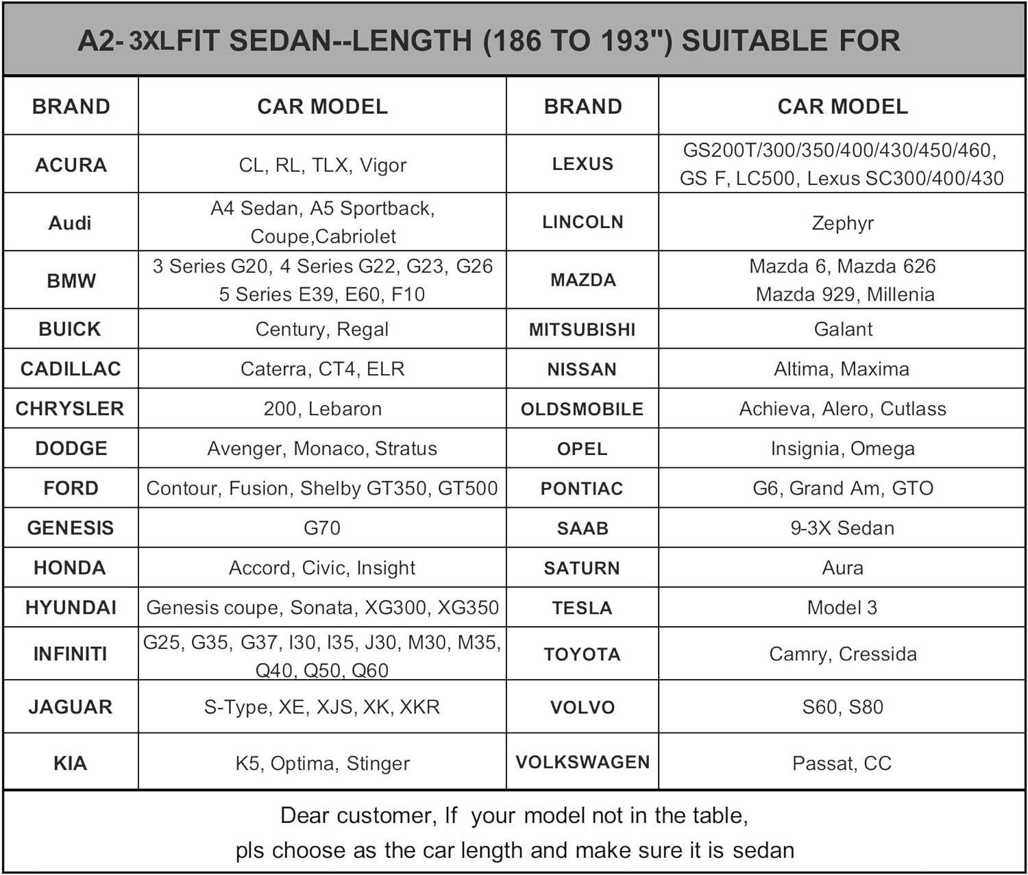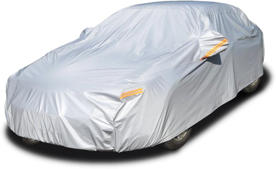 Kayme 6 Layers Car Cover Waterproof All Weather for Automobiles, Outdoor Full Cover Rain Sun UV Protection with Zipper Cotton, Size A2 3XL Universal Fit for Sedan (186-193 inch)